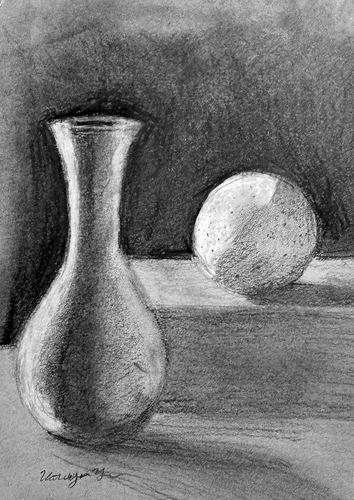 - Render one monochrome still life in graphite and charcoal via a photographic reference