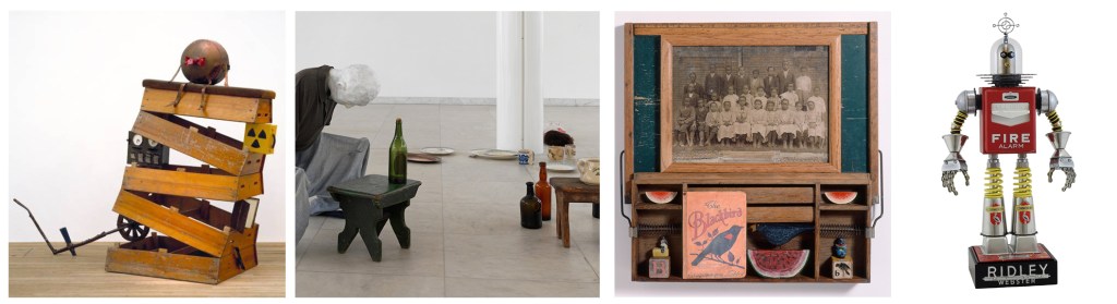 Found object sculptures are comprised of everyday objects. The history of found object sculpture is fascinating. It originated with the Dada movement, as artists like Marcel Duchamp and Man Ray would sometimes simply display maybe one or two objects and challenge observers to accept the object as art; these artists called their art Readymade. Challenging the status quo always results in change, and this new challenge was no different, as from this sprung a new form of art, and today we can see found object sculpture from artists as diverse in their approach as to almost create new movements by themselves. Such artists as Louise Nevelson, Robert Rauschenberg, Betye Saar, Michael Landy, Cathy Wilkes, Sarah Lucas and David Lipson. Yes, another reason this unit is so exciting for me is that as you can see, the number of women that have worked within this movement is exemplary.