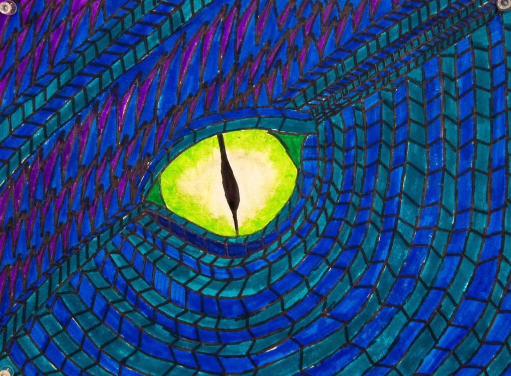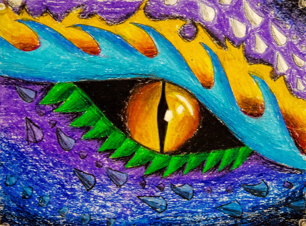 To many fifth graders no creature is more exciting to imagine and draw as the mythical dragon. In this unit we will review previously learned concepts, such as form, value, texture, contrast, pattern and emphasis, as well practice techniques such as shading, layering and burnishing, in order to create a boldly magnified dragon eye. To encourage students’ imaginations, I like for them to have access to different media, with sharpies, markers and oil pastels offering the most exciting effects. Also,