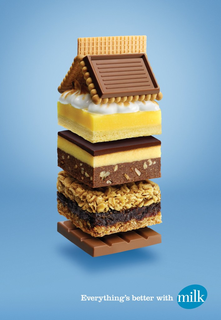 This ad for Band-Aids is one of the students’ favorites. Here we note the use of isolated color, where the image is dominated mostly by green, so that our eye is drawn to the band-aid around the Hulk’s finger. We discuss the use of a recognizable pop culture character, and the story the ad is telling, i.e. “our band-aids are so strong, that even when Bruce Banner turns into the Hulk, it stretches with him and stays on.”