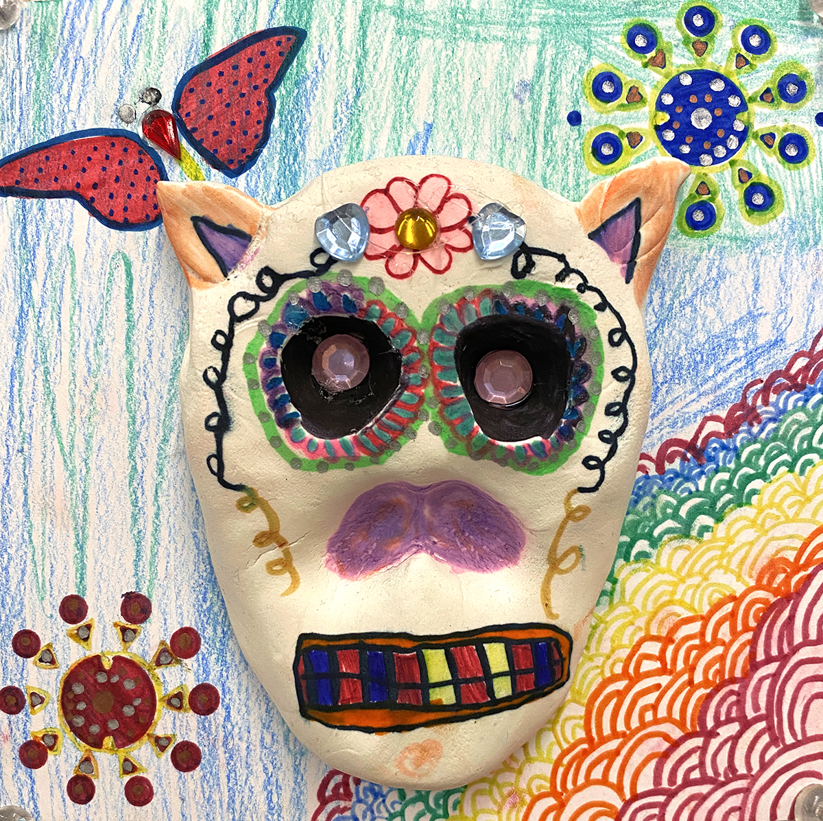 Description of the Unit – Students will celebrate Día de los Muertos by sculpting and designing their own “sugar” skulls (with clay) and setting them onto a colorful patterned background.