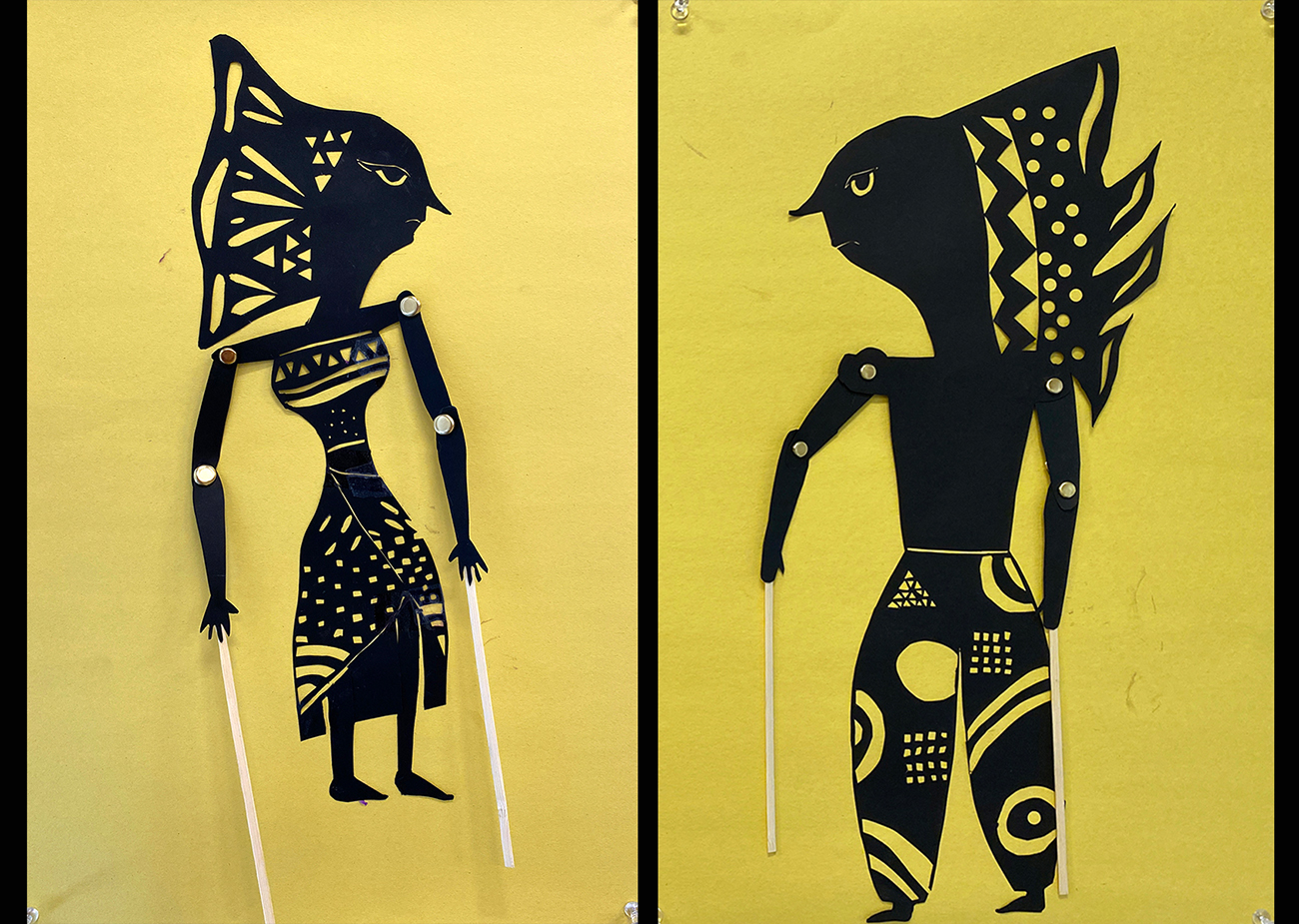 Description of the Unit – Students explore the fascinating shadow puppet art form from Indonesia known as Wayang Kulit. Students then create their own shadow puppets, taking particular care to carve patterns on the puppets’ costumes using negative space.