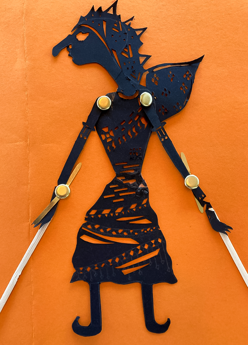 - Effectively perforate negative spaces into their puppets to express facial features as well as decorative designs in the costumes?