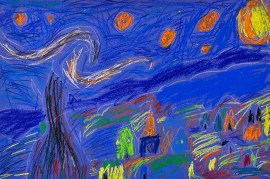 An example of a first grade student’s recreation of Vincent van Gogh’s Starry Night painting.