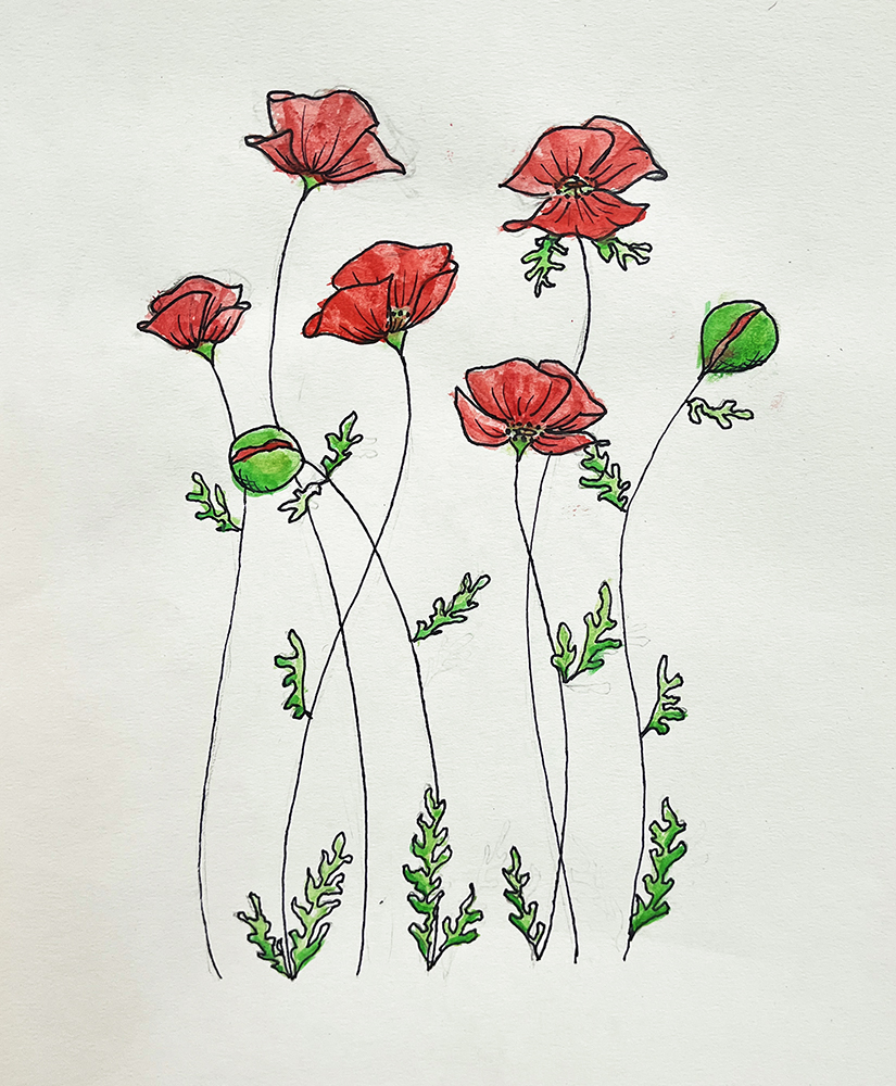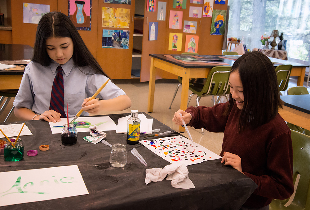 And that’s it! The remainder of the unit was spent giving the students the freedom to play and create their own designs and compositions. Most students seemed to most enjoy the combination of pen and watercolor, but a few still worked on paintings that incorporated the other materials.